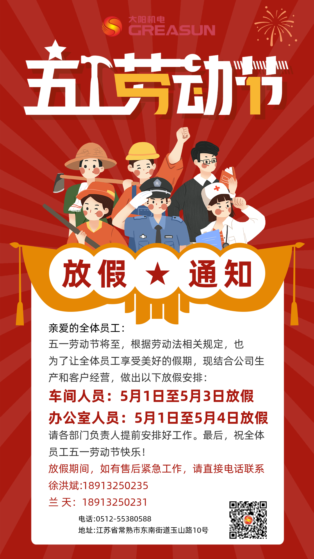 【放假通知】2025年大陽機(jī)電五一勞動(dòng)節(jié)放假通知